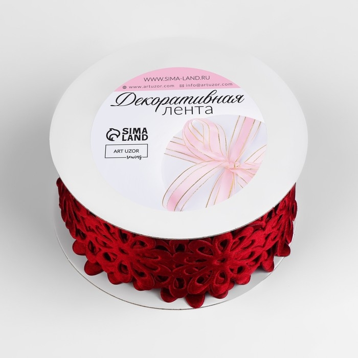 Лента фигурная «Вьюнчик», 25 мм, 9 ± 0,5 м, цвет вишнёвый
