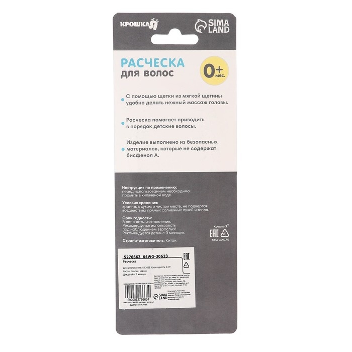 "Расческа-щетка с мягкой щетиной предназначена для малышей с первых дней жизни. Мягкая пушистая щетка имеет удобную эргономичную ручку, улучшает кровообращение кожи головы, не царапая её. Нежный массаж расслабляет и успокаивает перед сном, а стимуляция волосяных луковиц ускоряет рост первых волос малыша. Щетка с мягким ворсом позволит пригладить волосики и придать им аккуратный вид. Размер и форма подобраны с учётом возрастных особенностей. Аксессуар удобно ложится в маленькую ладошку крохи. Изготовлено из безопасного материала - не содержит бисфенол А."