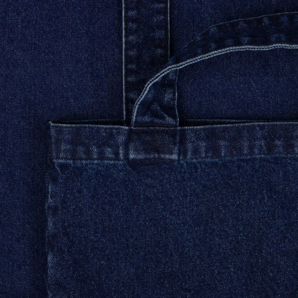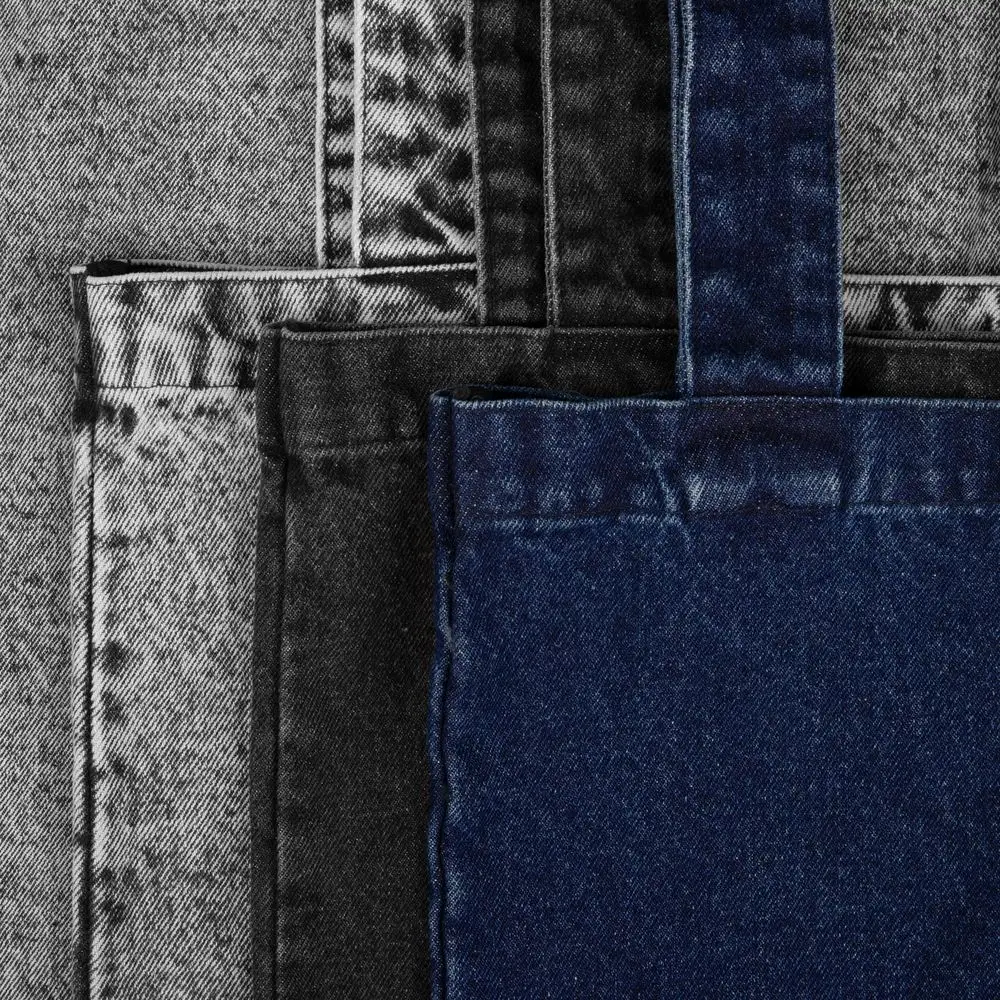 Базовый шопер из джинсовой ткани разработан в рамках единой коллекции и легко собирается в комплекты. Специально спроектированные лекала и технологии пошива открывают простор для любых вариантов кастомизации и нанесения изображений. На видимой части изделий нет лейблов с айдентикой бренда, а название бренда с уходника легко удалить.