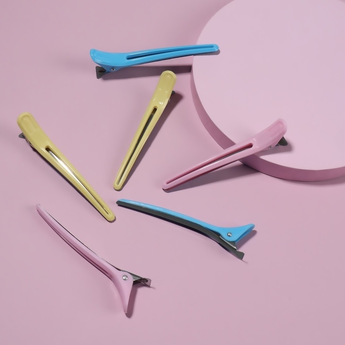 Зажимы для волос, набор - 6 шт, 10 см, цвет МИКС