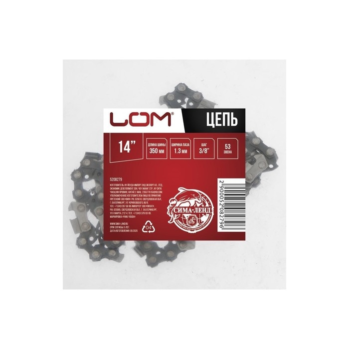 Цепь для бензопилы ЛОМ, 14", 350 мм, ширина паза 1.3 мм, шаг 3/8", 53 звена