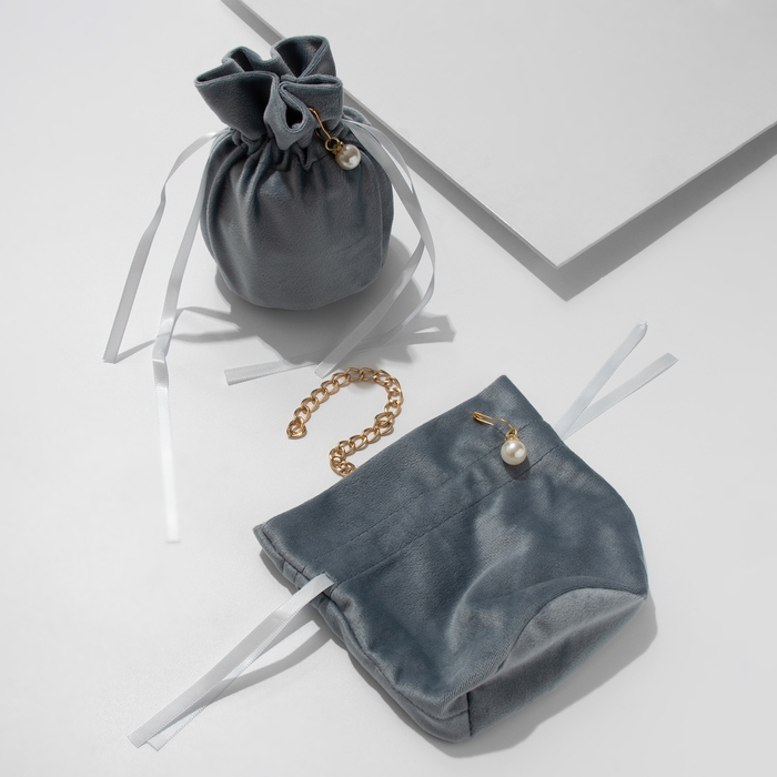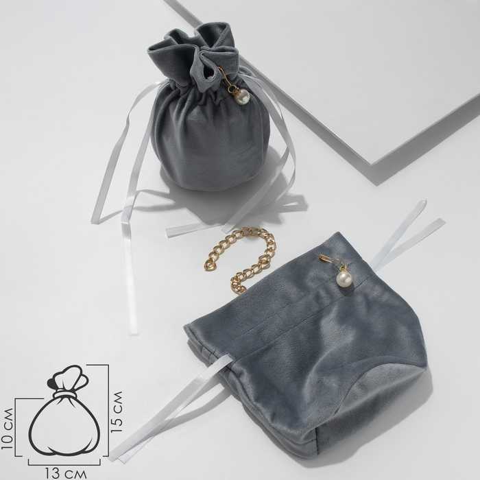 Мешочек бархатный с бусиной, 13×15 см, цвет серый