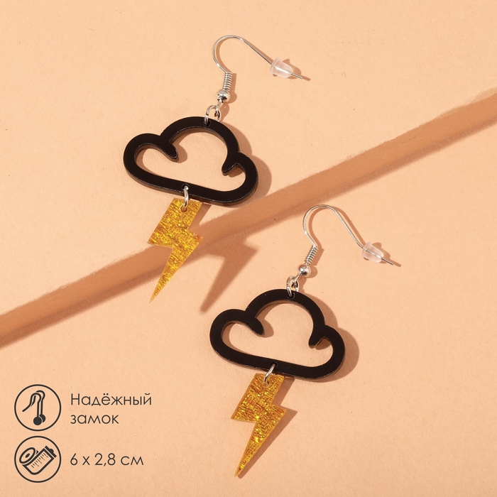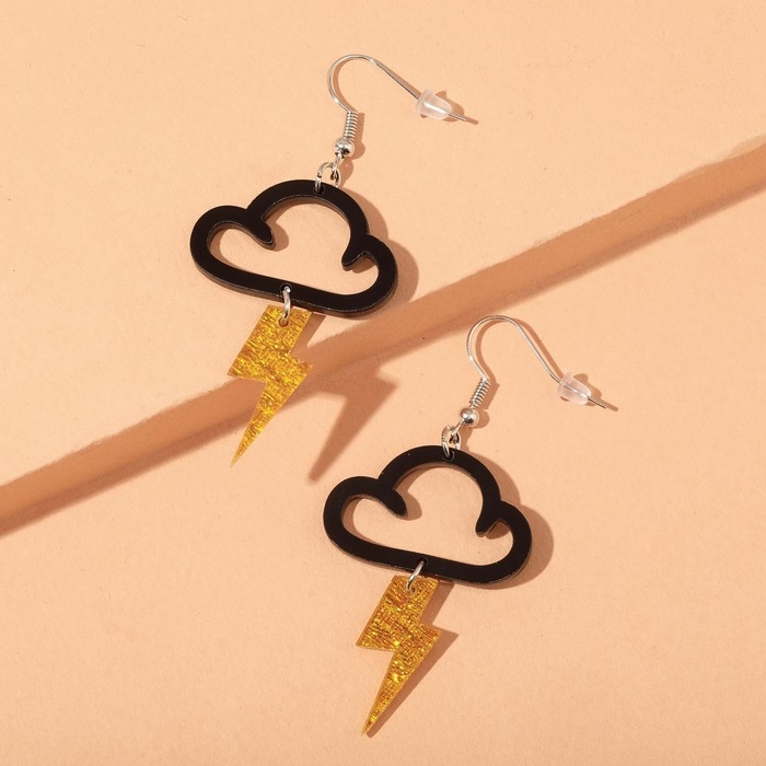 Серьги пластик «Тучка» молния, цвет чёрно-золотой