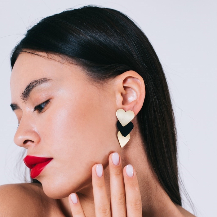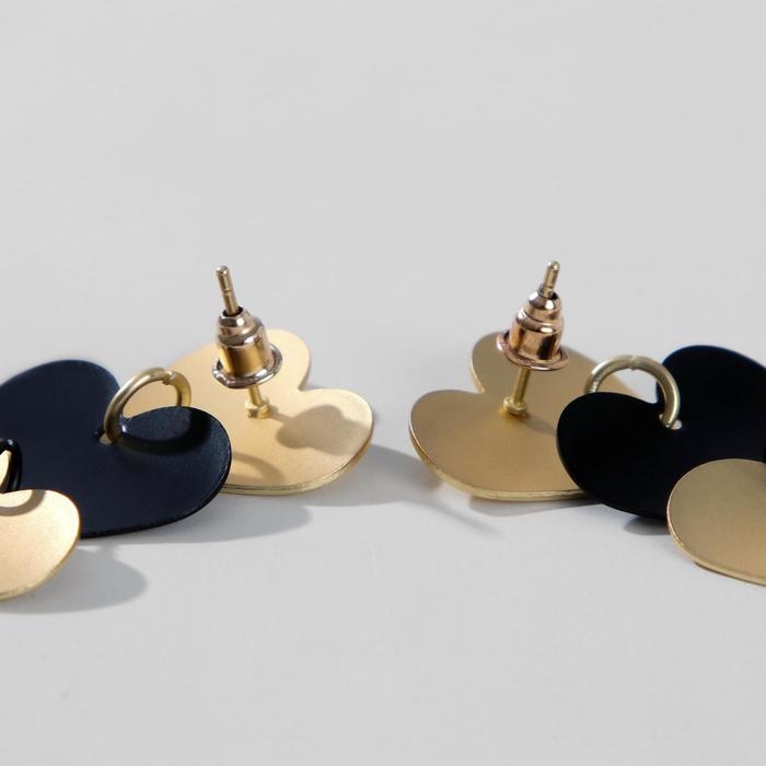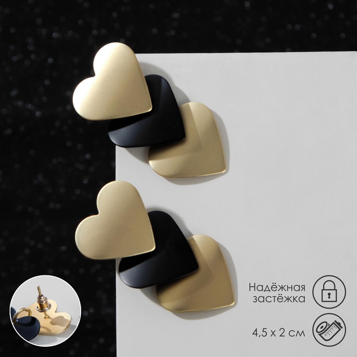 Серьги металл «Тренд» сердечки, цвет чёрно-золотой