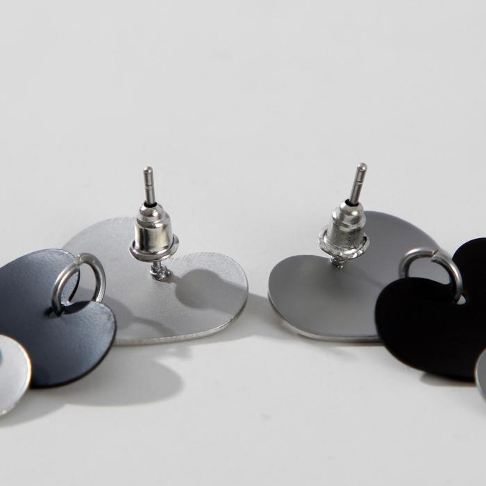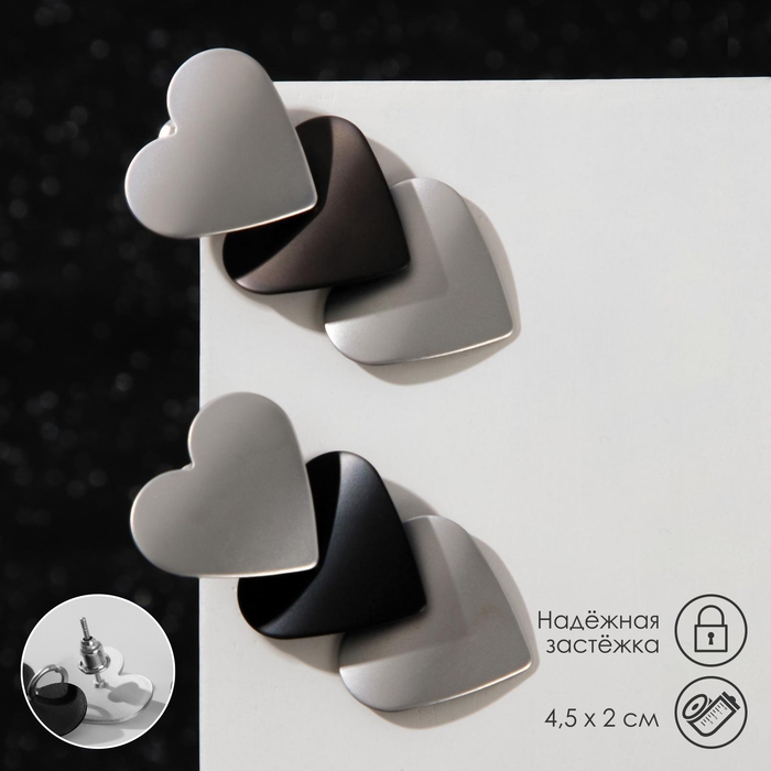 Серьги металл «Тренд» сердечки, цвет чёрно-серебряный