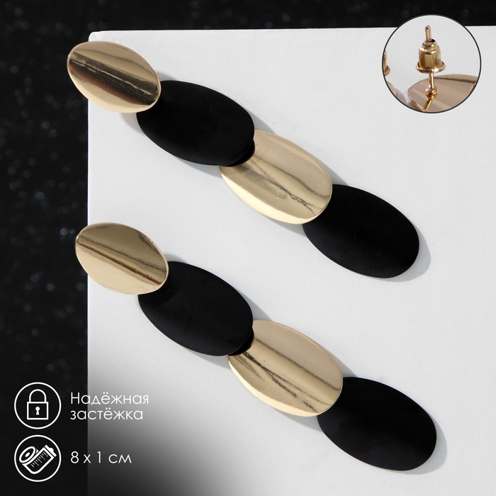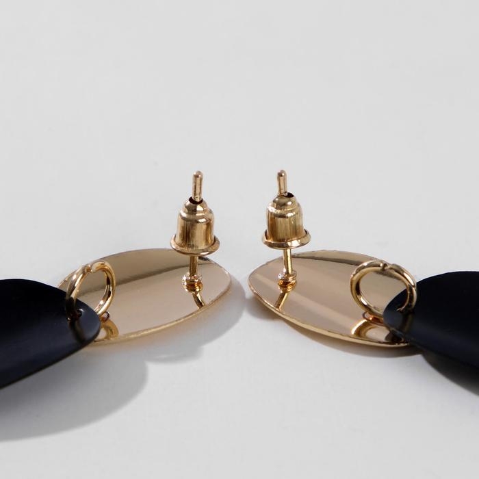 Серьги металл «Тренд» дорожка из овалов, цвет чёрный в глянцевом золоте