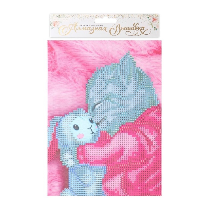Алмазная мозаика с частичным заполнением на холсте «Котик», 15 х 21 см
