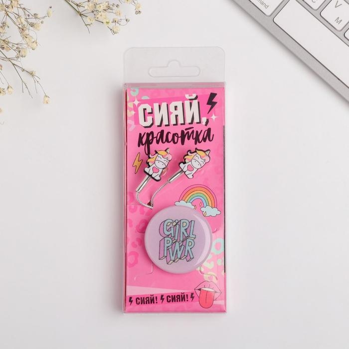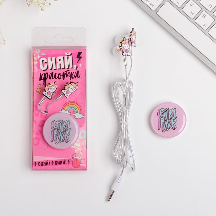Подарочный набор: наушники и попсокет «Сияй красотка», модель VBT 1.21, 13,5 х 6 см.