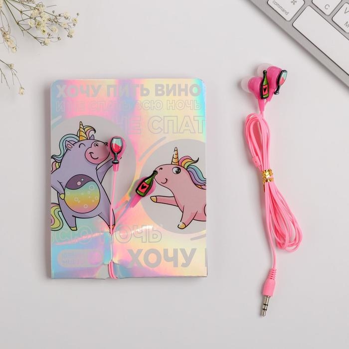Наушники вакуумные на открытке «Хочу пить вино», 11 х 20,8 см