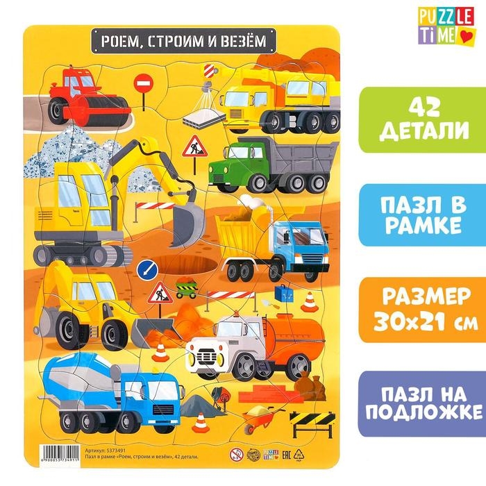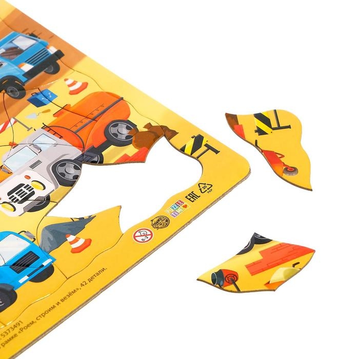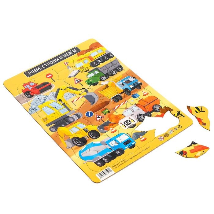 Пазл в рамке «Роем, строим и везём», 42 детали