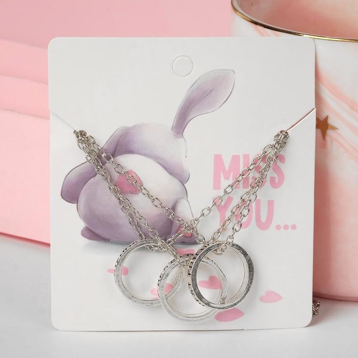 Кулоны «Неразлучники» три кольца, цвет серебро, 45 см