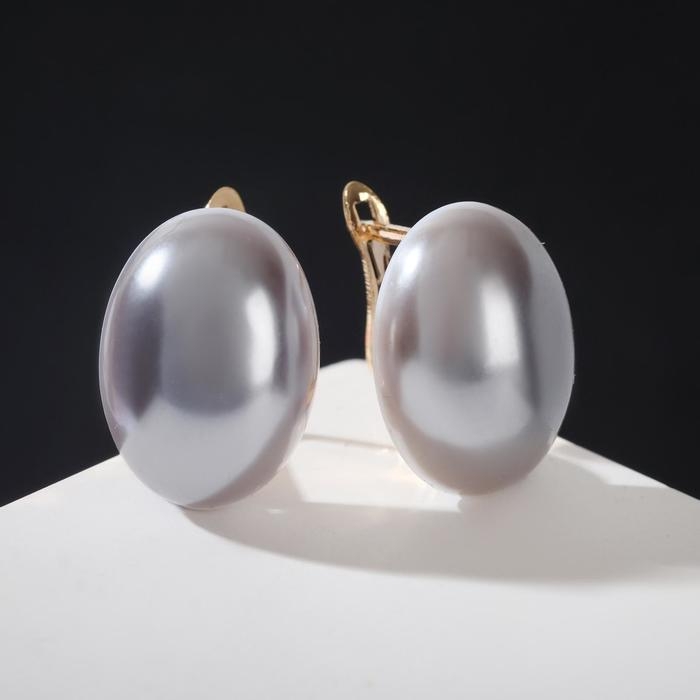 Серьги с жемчугом «Грейс» вытянутый овал, цвет серый в золоте