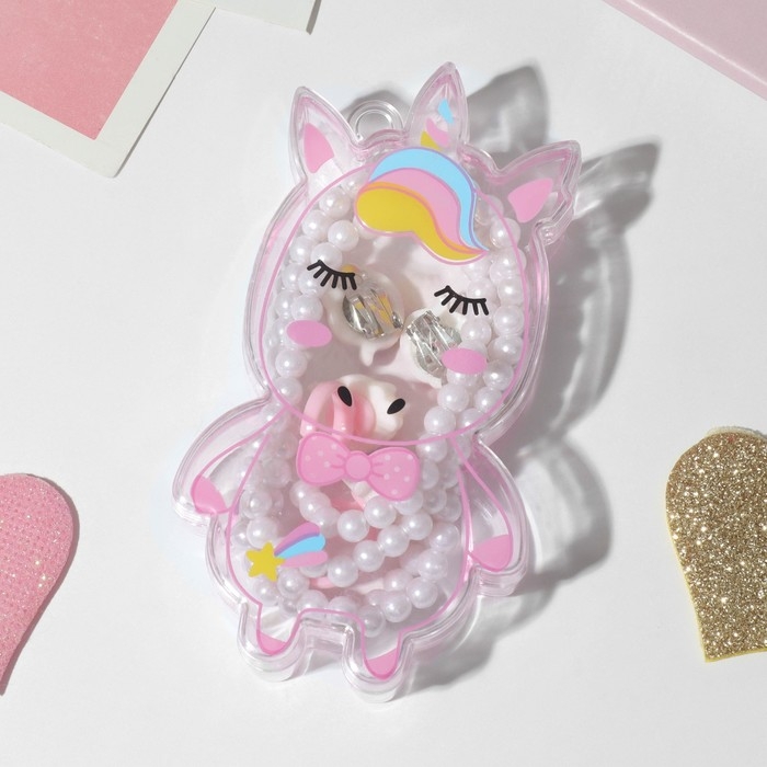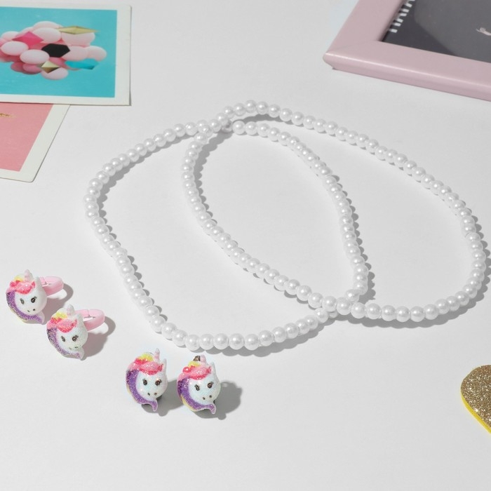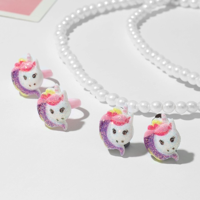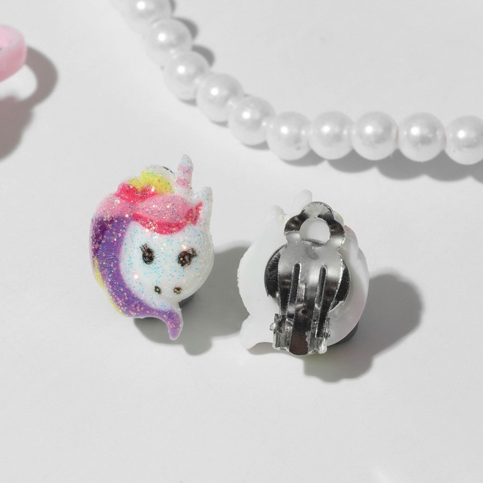 Набор детский 4 предмета: клипсы, бусы, браслет, кольцо «Единорожка», цветной