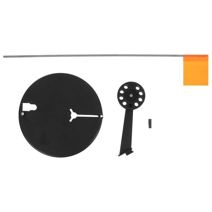 Жерлица зимняя для подледной ловли рыбы состоит из основания, стойки с катушкой и флажка-сигнализатора с фиксатором крепления.