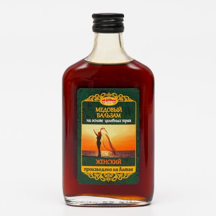 Алтайский бальзам медовый безалкогольный ЖЕНСКИЙ это комплекс натуральных трав Алтая. Бальзам нормализует самочувствие в период климакса, стабилизирует гормональный фон, улучшает обмен кальция, состояние кожи и костной ткани, нормализует работу ЖКТ, укрепляет иммунную систему, нормализует сон, уменьшает потливость, оказывает мочегонное, противовоспалительное действие. Широко используется при воспалении мочевыводящих путей и гинекологических воспалительных заболеваниях, бесплодии, при лечении миомы матки, мастопатии, эрозий, кист, эндометриозов, болезненных и нерегулярных месячных. Не является лекарством.