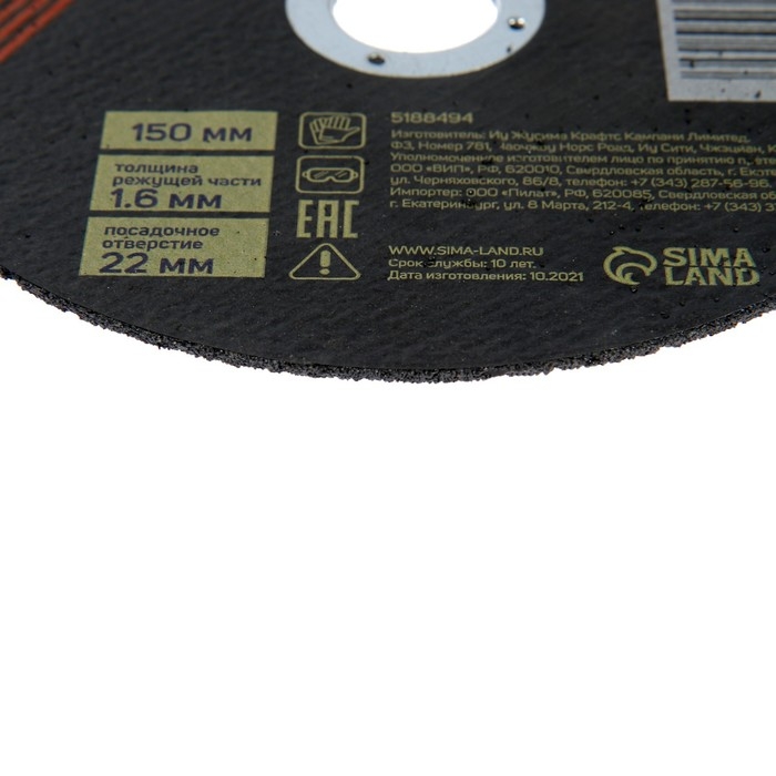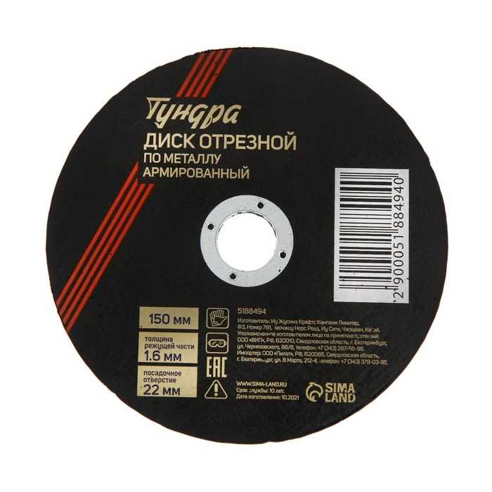 Круг отрезной по металлу ТУНДРА, армированный, 150 х 1.6 х 22 мм
