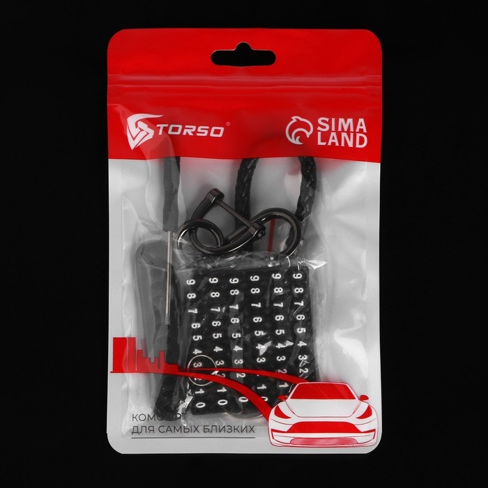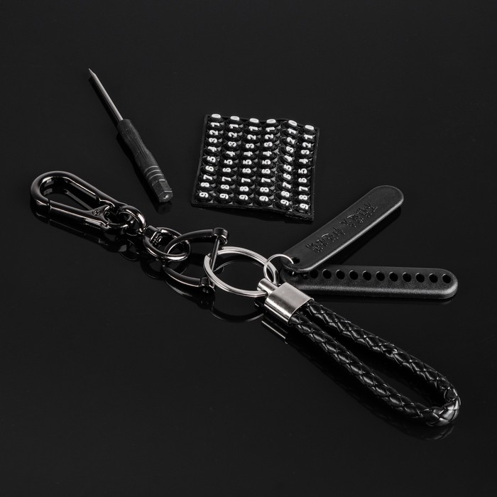 Брелок для ключей петля с номером сотового, карабин, черный