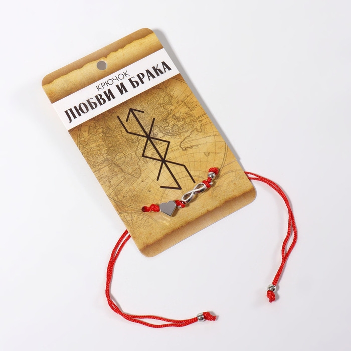 Браслет-оберег «Став» крючок любви и брака, сердце и бесконечность, цвет серебро, 8 см