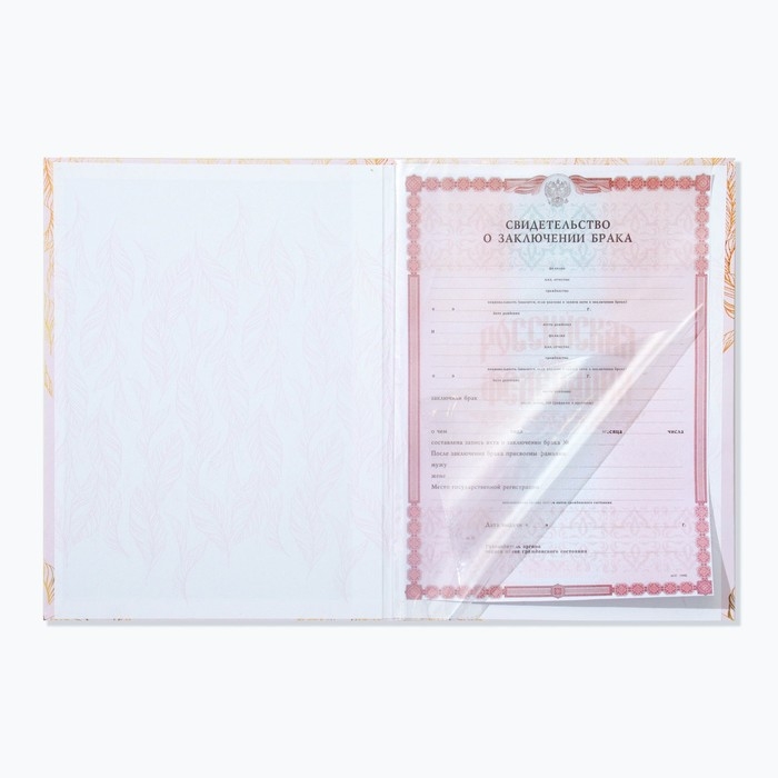Обложка для свидетельства о заключении брака формата А4 станет лучшим обрамлением для вашего первого совместного документа. Красивая свадебная папка подчеркнёт всю торжественность бракосочетания, она будет напоминать вам о светлом дне свадьбы. В такой папке ваш семейный документ не помнётся, не испачкается и будет сохранять свою красоту всю жизнь. Оригинальный дизайн папки создаст отличное настроение новобрачным и станет хорошим презентом на свадьбу или её годовщину. Папка изготовлена ихз переплётного картона 1,25 мм. Формат обложки А4. Папка с файлом А4.