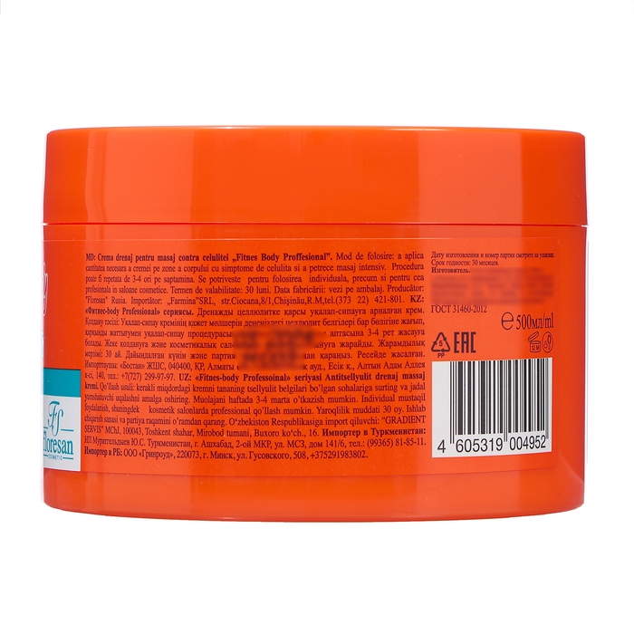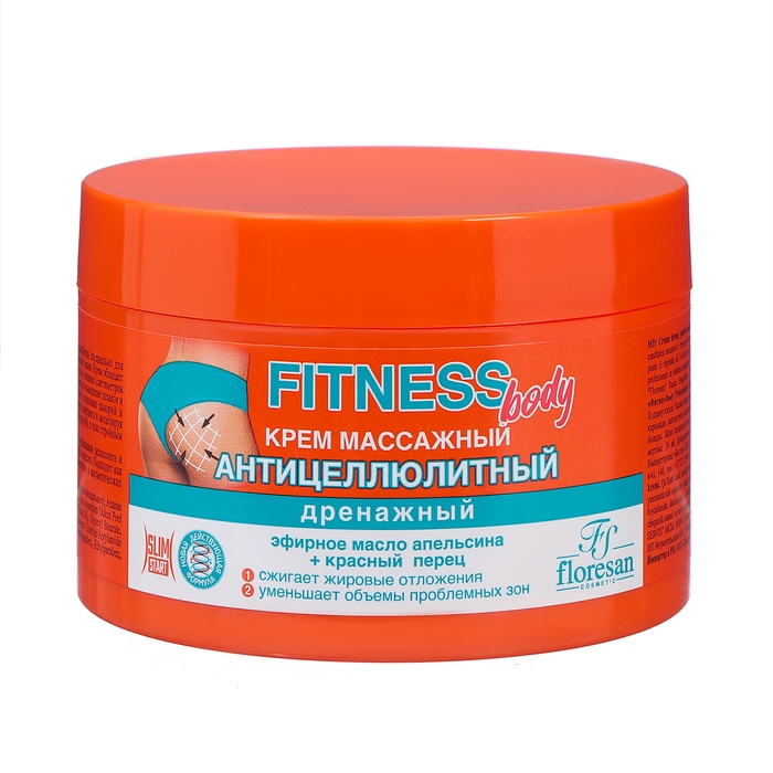 Floresan Фитнес body Крем массажный антицеллюлитный дренажный 500 мл создан специально для повышения антицеллюлитного действия массажа путем ускорения липолиза и естественного метаболизма жировой ткани.
