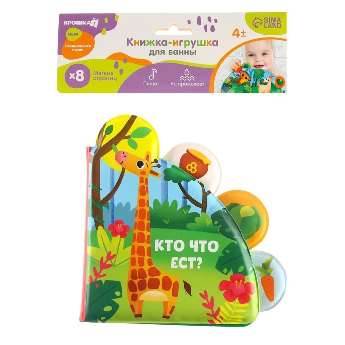 Книжка - игрушка для ванны «Кто что ест?», с окошками, Крошка Я