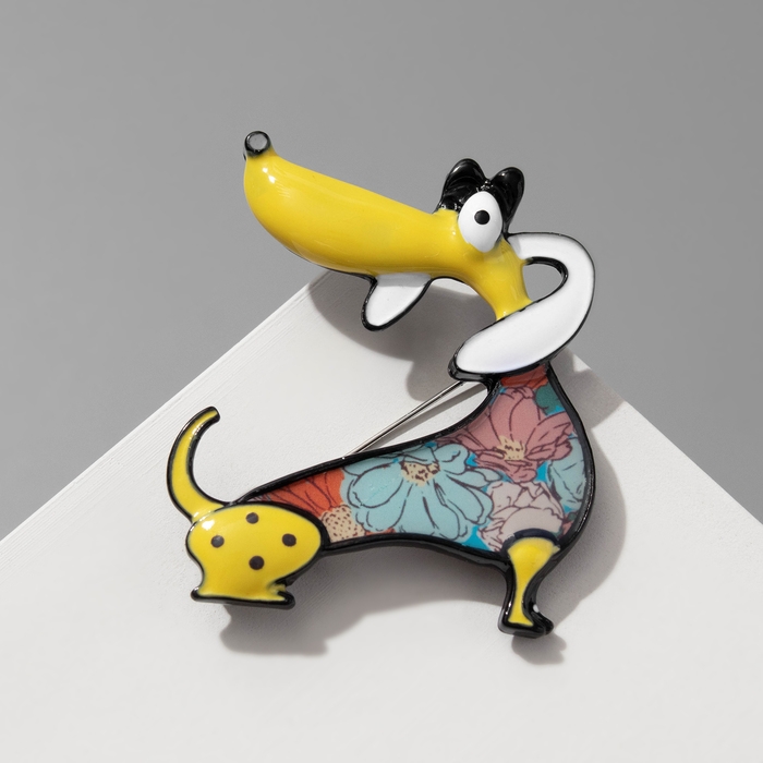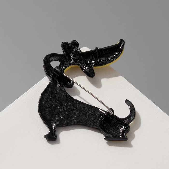 Брошь мультяшная «Собачка» такса, цветная в чёрном металле