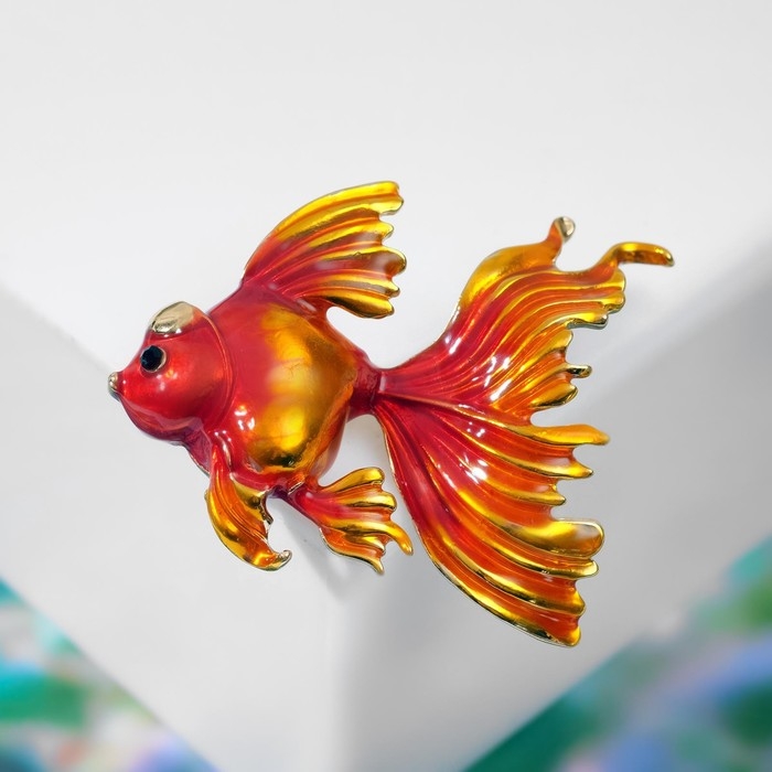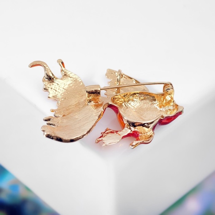 Брошь «Рыбка» петушок, цвет красно-золотой в золоте