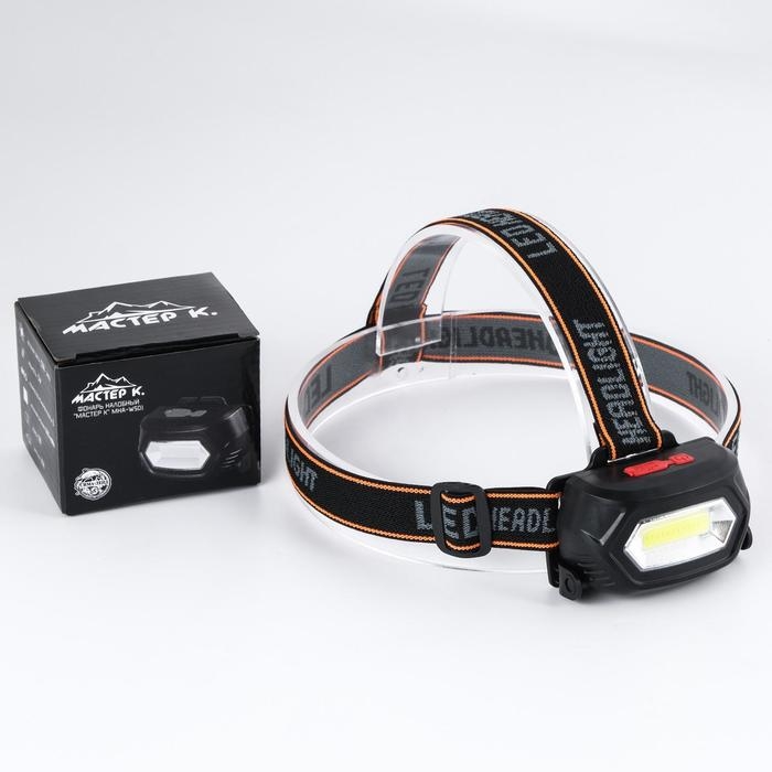 Фонарь налобный аккумуляторный "Мастер К", 3 режима, от USB, 5 х 8 см
