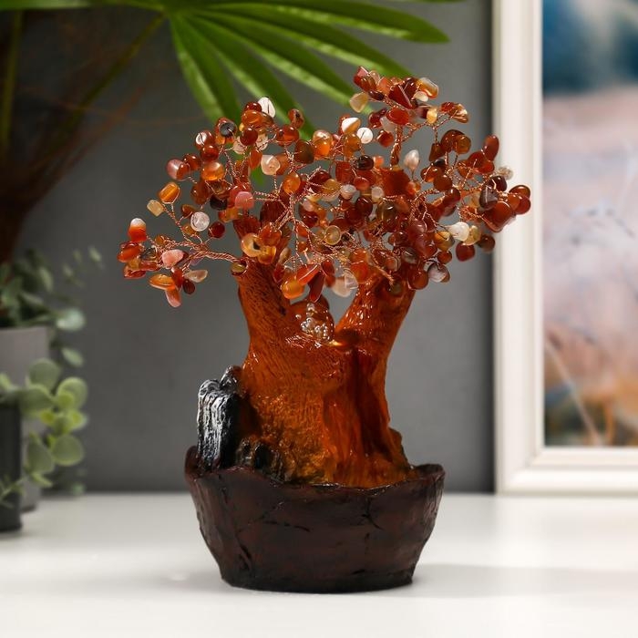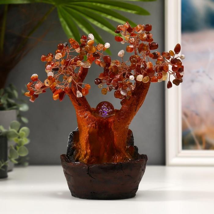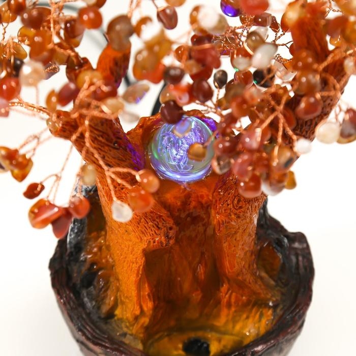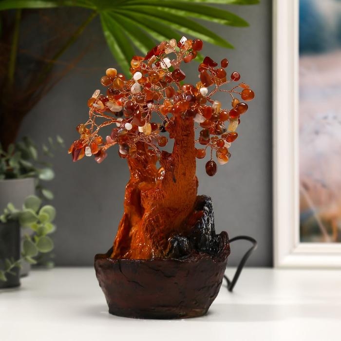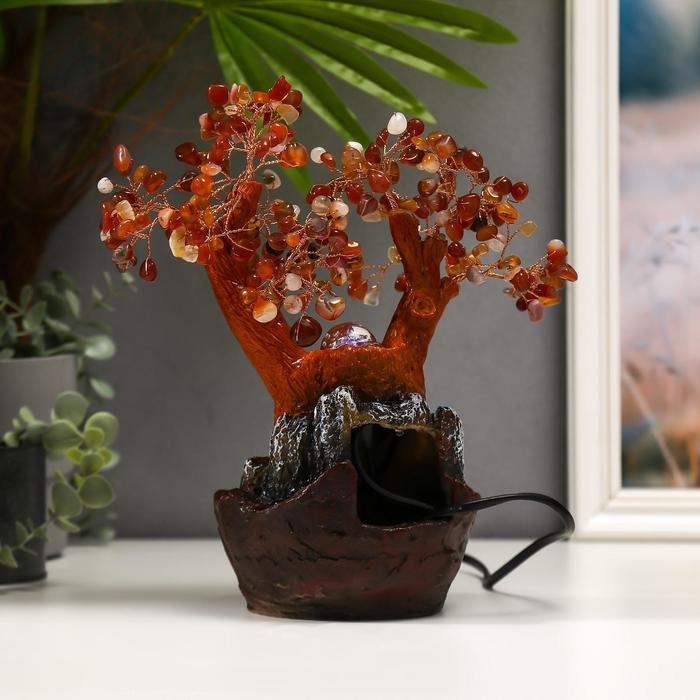 Фонтан настольный от сети, подсветка "Старое дерево с топазами" 180 камней 16х22х12 см