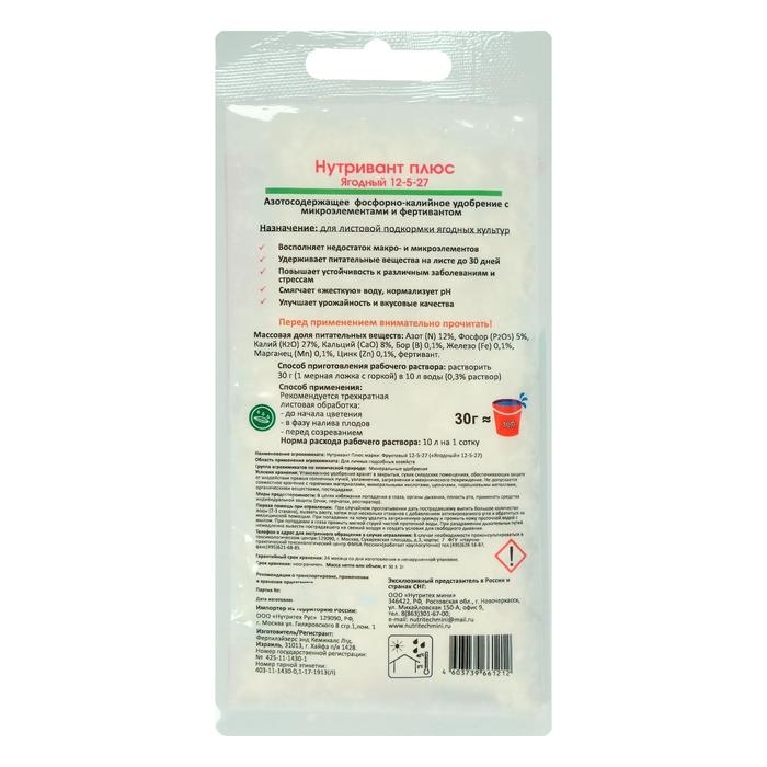 Удобрение Нутривант Плюс Ягодный 12-5-27, 30 г