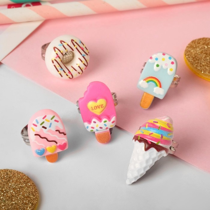 Набор детских колец «Бабочка» сладости, форма МИКС, цветные