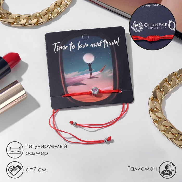 Браслет-оберег «Красная нить» Your daily life страза в рамке, цвет белый в серебре, 7 см