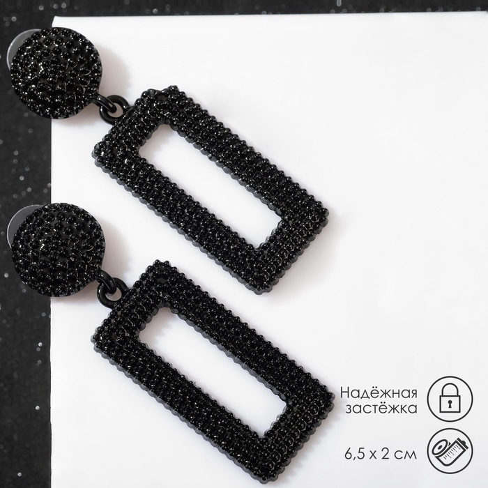 Серьги металл «Барбадос» прямоугольник, цвет чёрный