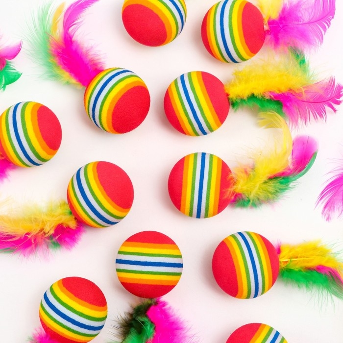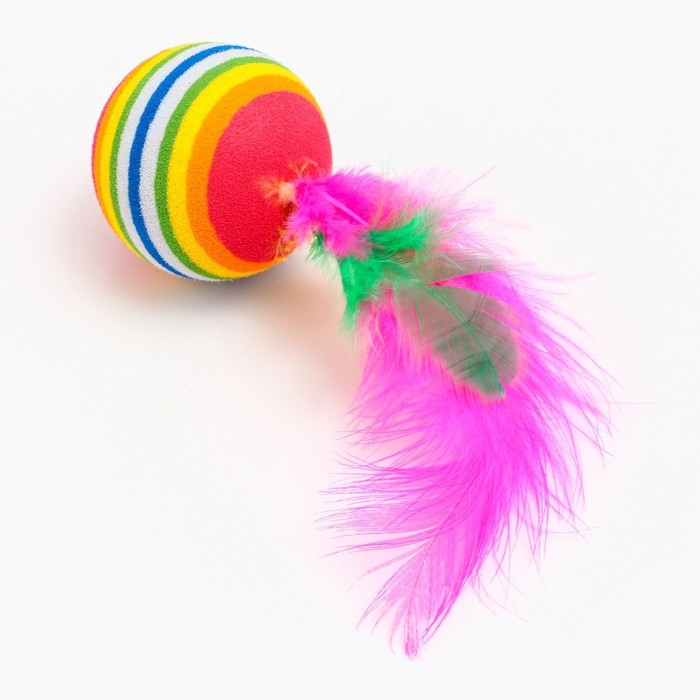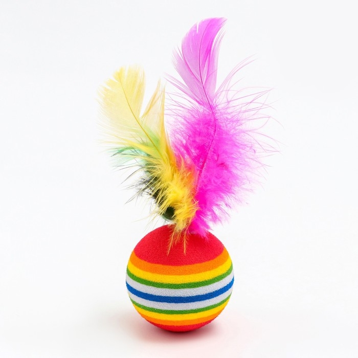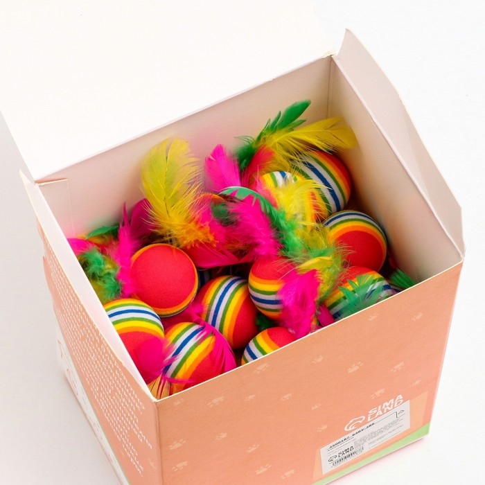 Шарик с перьями для кошек, 3,4 см, фасовка по 50 шт, микс цветов