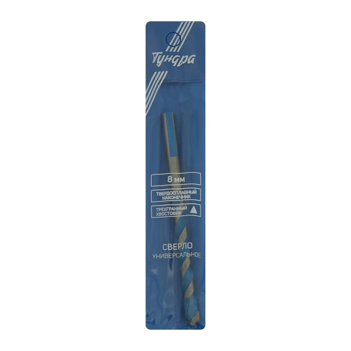 Сверло универсальное ТУНДРА, твердосплавный наконечник, трехгранный хвостовик, 8 х 115 мм
