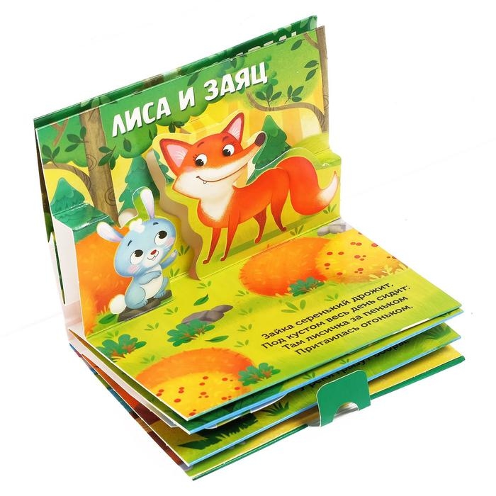 Книга-панорамка сделана из картона, а внутри на каждом развороте есть 3D-иллюстрации, которые оживят рассказы. В книге 5 разворотов.