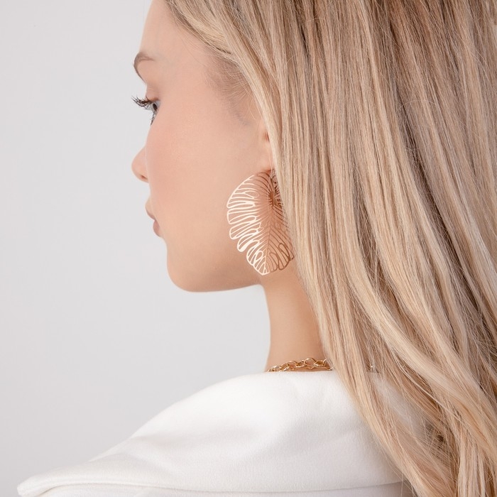 Серьги металл «Монстера» листочек, цвет розовое золото