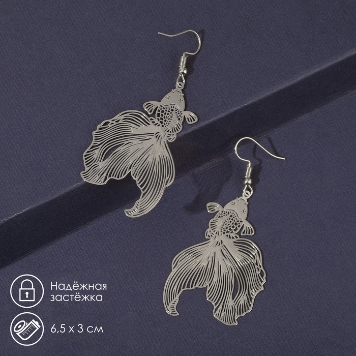 Серьги металл «Рыбка» волшебство, цвет серебро