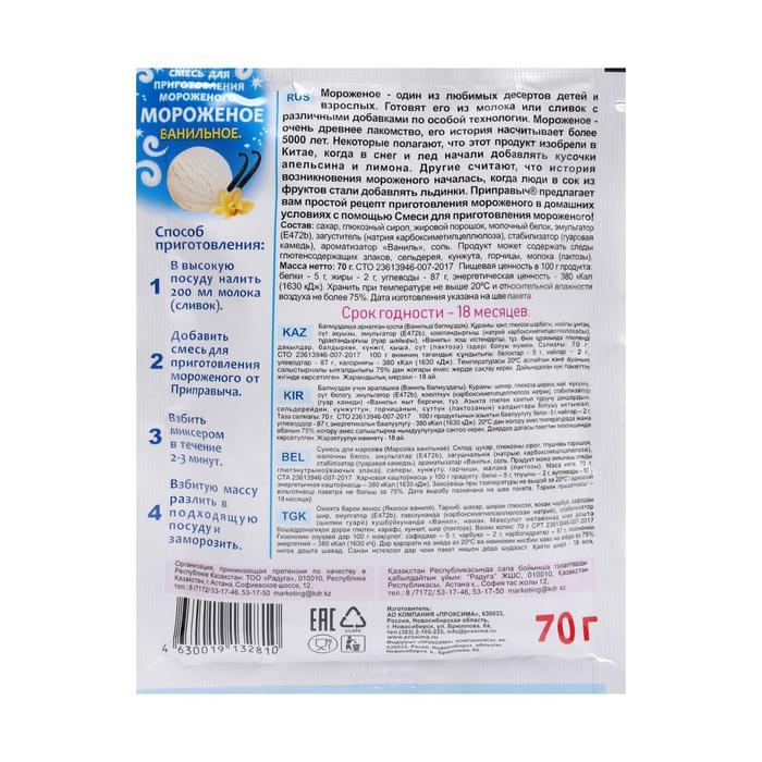 Смесь для приготовления мороженого «Приправыч», сливочное, 70 г