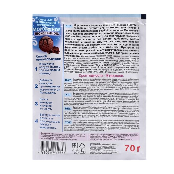 Смесь для приготовления мороженого «Приправыч», шоколадное, 70 г