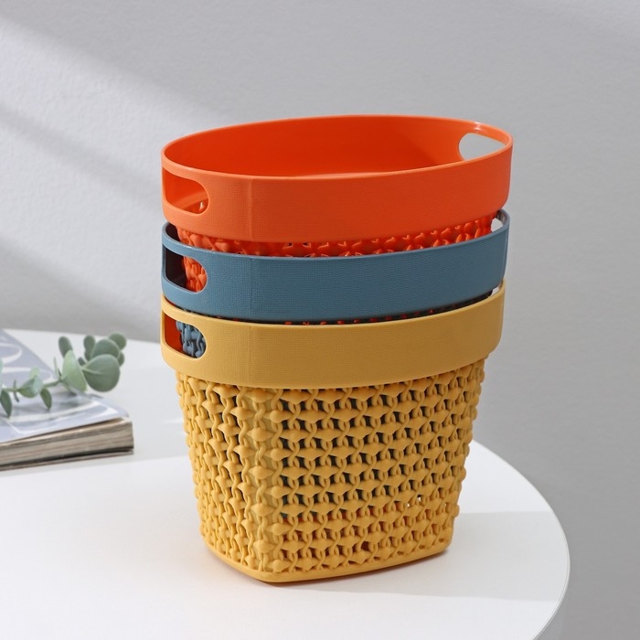 Корзина для мелочей с ручками, пластик, 16,5×11×12 см, цвет МИКС