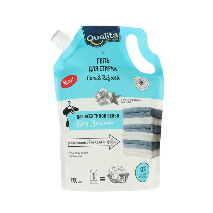 Гель для стирки белья универсальный без запаха Qualita не содержит отдушки, подходит для людей с аллергией на запахи. Стирка в стиральных машинах любых типов и вручную. Концентрированный состав демонстрирует высокую эффективность и экономичный расход. До 90% ингредиентов натурального происхождения, в составе не содержится фосфатов. Гель безопасен для окружающей среды. Экстракт хлопка восстанавливает ткань и защищает от образования катышков. Содержит оптический отбеливатель: белые вещи становятся белее, цветные ярче