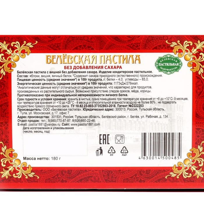 Пастила Белевская без сахара с вишней, 180 г
