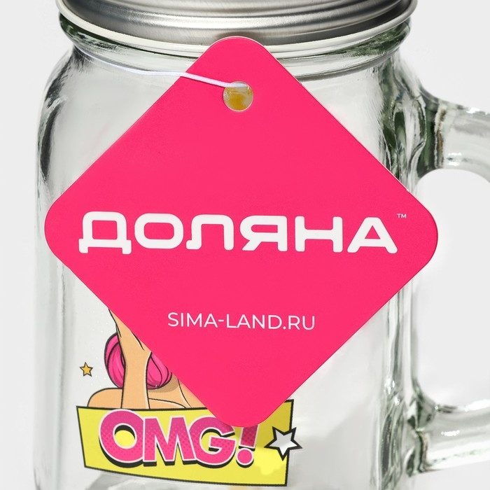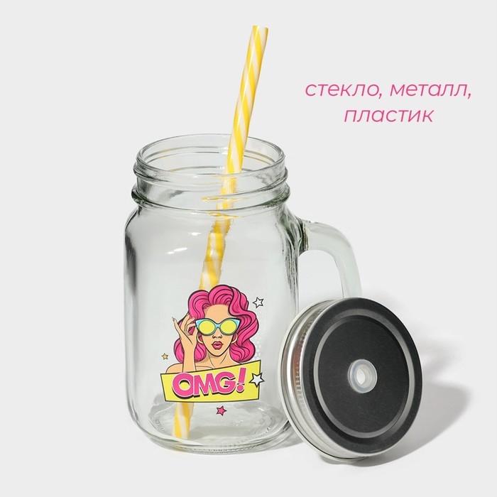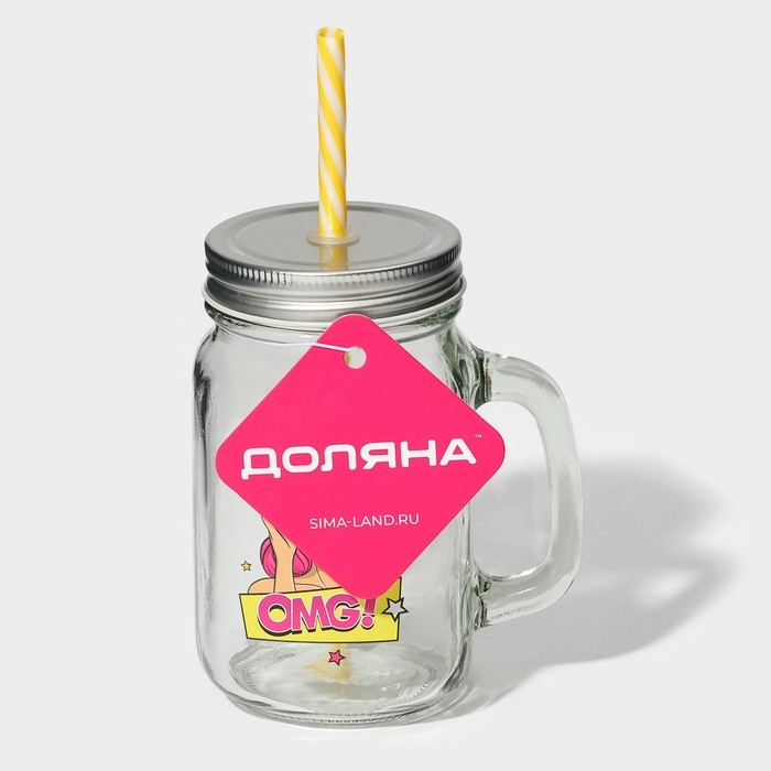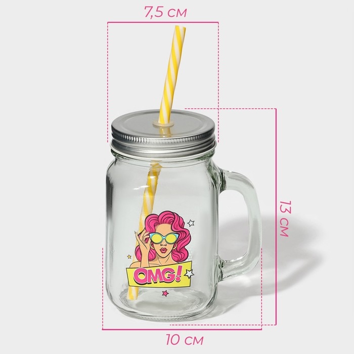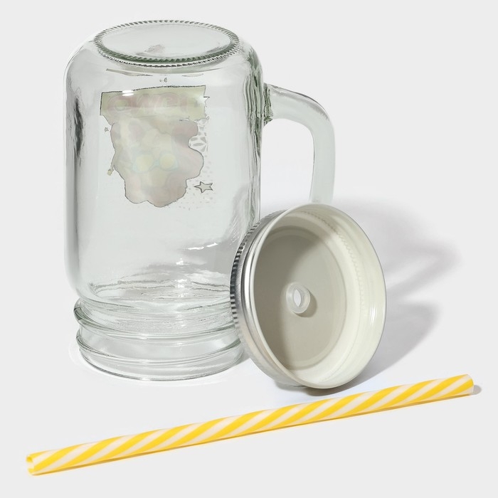 Кружка стеклянная с крышкой и трубочкой Доляна «Комикс», 450 мл, 10×7,5×13 см