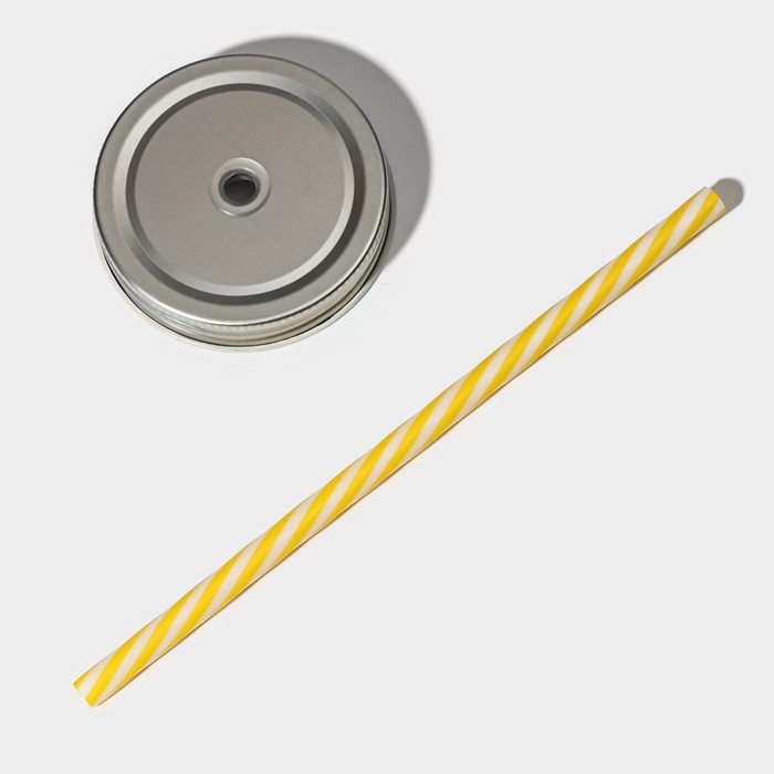 Набор кружек стеклянных Доляна «Яркий лимонад», 2 предмета: 2 кружки с крышками и трубочками 450 мл