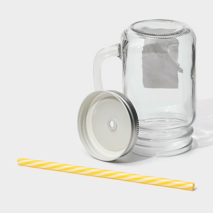 Набор кружек стеклянных Доляна «Яркий лимонад», 2 предмета: 2 кружки с крышками и трубочками 450 мл
