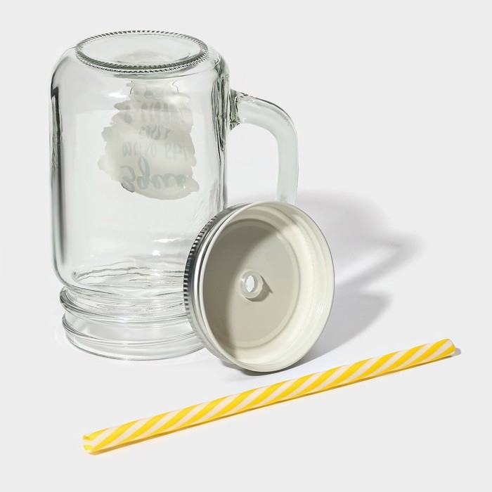 Набор кружек стеклянных Доляна «Яркий лимонад», 2 предмета: 2 кружки с крышками и трубочками 450 мл
