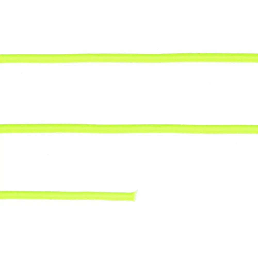 Резинка представляет собой пучок латексных нитей с внешней полиэфирной оплеткой. Такая конструкция обеспечивает плавное растяжение и защищает резинку от разрыва и повреждений.