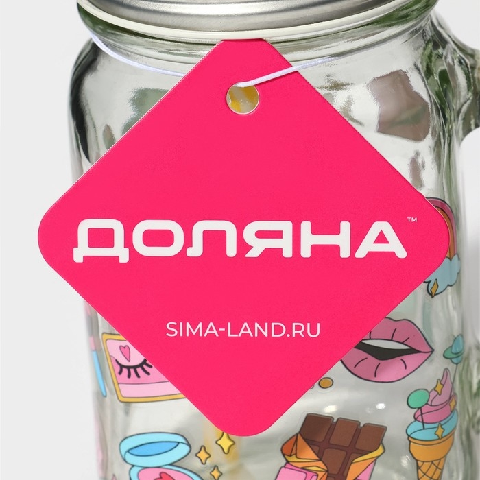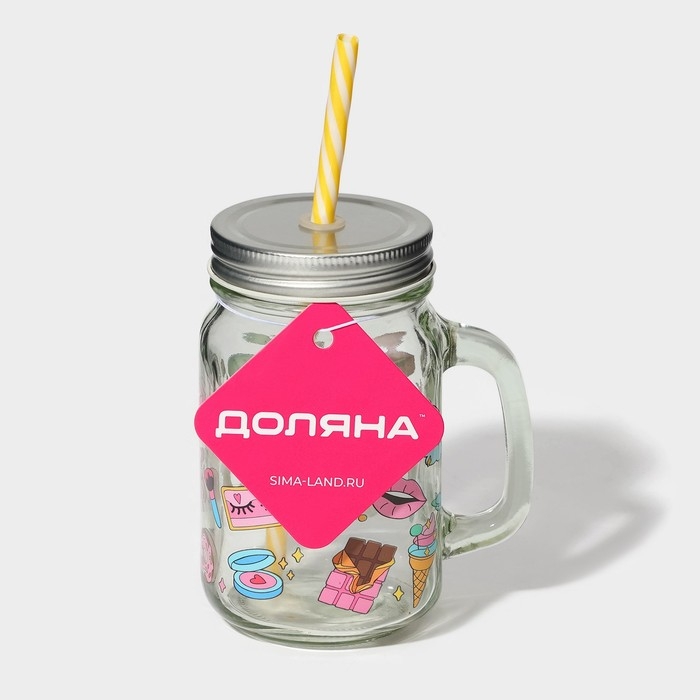 Кружка стеклянная с крышкой и трубочкой Доляна «Ананас», 500 мл, 11×8,5×13 см, цвет МИКС