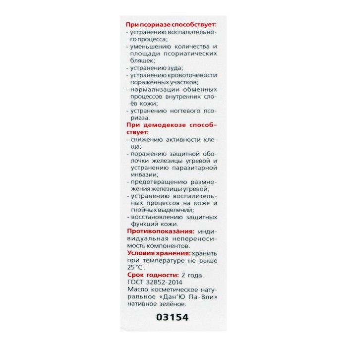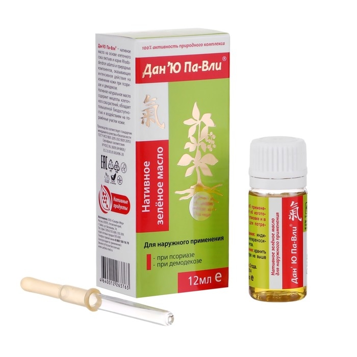 Зелёное масло «Дан'Ю Па-вли» при псориазе и демодекозе, 12 мл